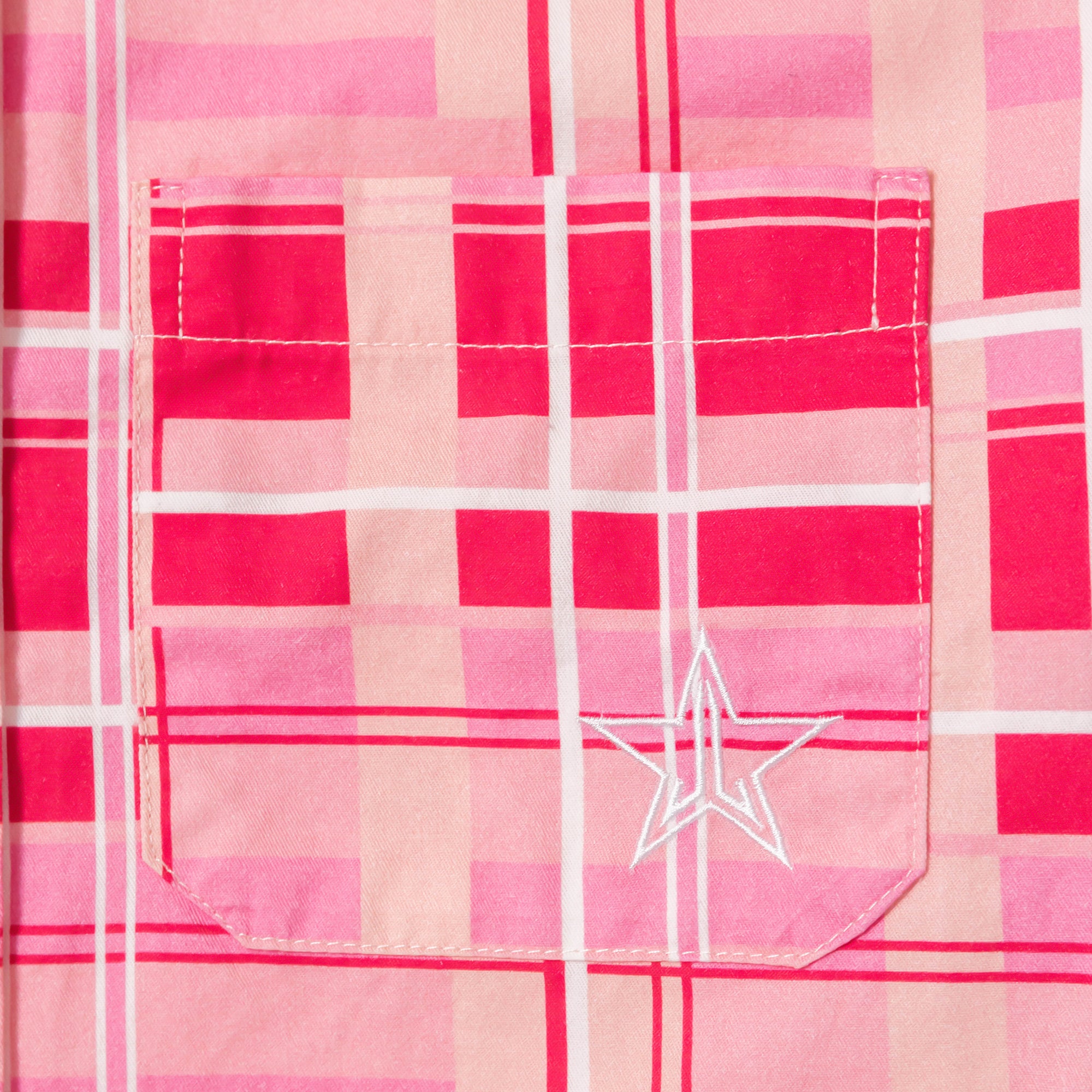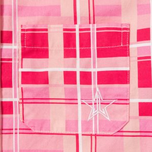 HOWDY! How are ya? Let’s get down to it! This Pink Plaid Western Shirt includes snap buttons with the Jeffree Star Logo. Front chest pocket features an embroidered logo design. This shirt is a must have for those cool summer nights!